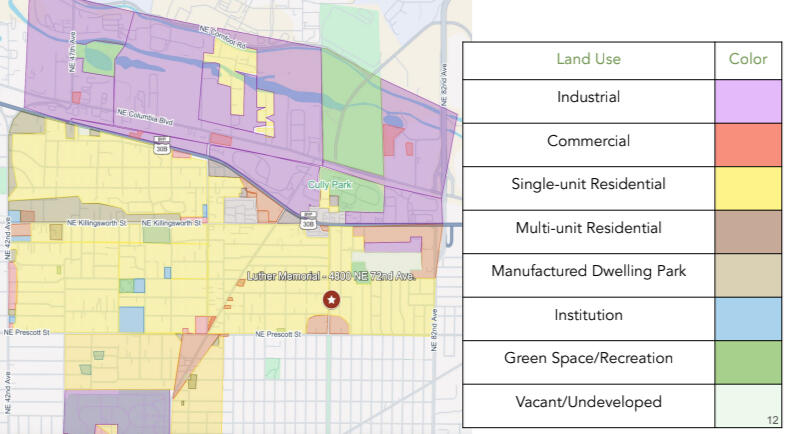 Role: research, land-use analysis, interview strategyThis project analyzed the feasibility, and needs of the Cully neighborhood in Portland, OR for creating a community resilience hub at the Luther Memorial Building run by Ecumenical Ministries of Oregon. As one of the most racially diverse, and largest geographic neighborhoods in Portland, Cully’s current infrastructure, economic makeup, and social indicators make it vulnerable to extreme weather events. To conduct the needs assessment, I conducted a land use analysis, interviewed neighborhood association members, and reviewed parallel project best practices to identify recommendations for EMO. We discovered that as a neighborhood built on a history of community-driven planning, and a trusted relationship through services already provided by EMO in the neighborhood, there is a strong network of partners and interested parties to bring the resilience hub to life.